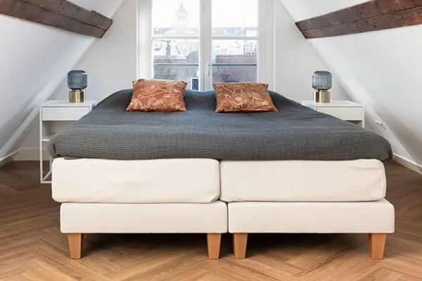 Indeling: Stijlvolle Indeling & Hoogwaardige Afwerking Bij binnenkomst via het nette gemeenschappelijke trappenhuis bereikt u de vierde verdieping, waar deze exclusieve woning zich bevindt. De royale woonkamer aan de voorzijde wordt gekenmerkt door grote ramen, die zorgen voor een prachtige lichtinval en een ruimtelijk gevoel. Aan de achterzijde bevindt zich het royale dakterras, De moderne open keuken is een droom voor kookliefhebbers en uitgerust met hoogwaardige inbouwapparatuur, waaronder: koelkast en vriezer met drie laden, combi-oven magnetron, Quooker voor direct kokend water, 4-pits inductiekookplaat met geïntegreerde afzuiging en vaatwasser. Op de tweede verdieping bevindt zich de ruime slaapkamer, die garant staat voor een goede nachtrust. Direct grenzend aan de slaapkamer ligt de luxe badkamer, voorzien van: wastafel met mengkraan, handdoekenradiator en stijlvolle inloopdouche met regendouche en handdouche.