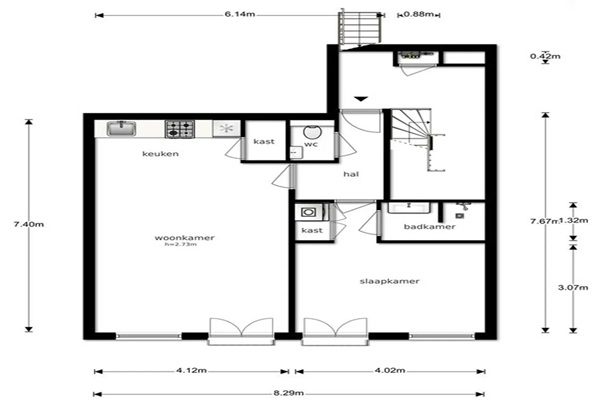 Indeling Entree, verzorgd gemeenschappelijk trappenhuis met de woningtoegangsdeur op de tweede verdieping. Hal met toegang tot de woonkamer en het separate toilet met fontein. Ruime woonkamer met open keuken welke is voorzien van diverse inbouwapparatuur zoals een koelkast met vriesvak, 4-pits gaskookplaat, afzuigkap, combi oven/magnetron en vaatwasser. De slaapkamer is eveneens te bereiken vanuit de woonkamer en beschikt over een en-suite badkamer met inloopdouche en een wastafel met meubel. De slaapkamer beschikt verder over een ruime inbouwkast met de CV ketel, de wasmachine en droger. Separate bergruimte gelegen in de kelder. GEEN studenten en/of groepsbewoning