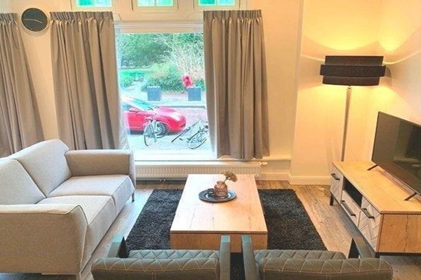 Indeling: Gelegen op de entree verdieping, ruim en licht uitzicht op de Doezastraat en het park. Entree, hal. Eén slaapkamer met tweepersoonsbed en kasten. Aparte bijkeuken met wasmachine en droger. Open volledig ingerichte keuken (hoogglans wit) met natuurstenen keukenblad. In de woonkamer is de flatscreen TV voor u opgehangen en verbonden met internet en WIFI. Badkamer met inloopdouche, apart toilet. Grootte: 50 m² Het gehele appartement is hypermodern en strak van opzet met houtlook PVC vloer en strak gestuukte wanden. Lichtwerende gordijnen en hoge ramen. Vloerverwarming in de badkamer. Automatisch Luchtafzuigsysteem, eigen CV, entree aan de voorzijde van het pand met intercom camerasysteem.