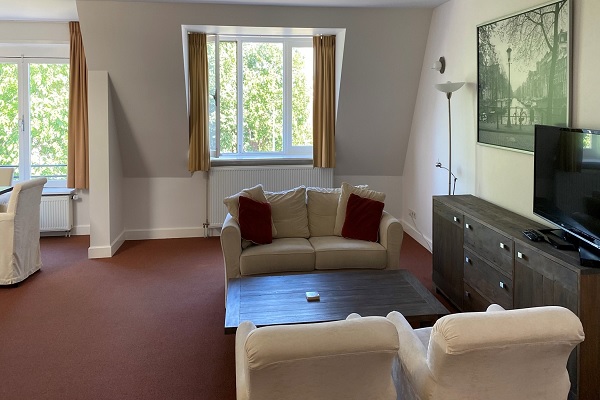 Indeling: •Voordeur, trapopgang naar de tweede verdieping, ruime ontvangsthal en toegangsdeur naar het appartement •Zeer ruime woonkamer, veel lichtinval door de vele raampartijen en een fraai uitzicht over de wijk •Recentelijk geschilderd en volledig gemeubileerd •Moderne open keuken voorzien van modern inbouwapparatuur •1e ruime slaapkamer aan de achterkant van het appartement voorzien van een kast •2e ruime slaapkamer aan de achterkant van het appartement •Vanuit de slaapkamers heeft u fantastisch uitzicht over een groene tuin •Beide slaapkamers zijn voorzien van een TV en Internet aansluiting •Moderne badkamer voorzien van een ligbad, radiator, was meubel en was-droog machine •Separaat toilet •Open trapopgang naar het zonnige dakterras met werkelijk fantastisch zicht over de buurt Dit appartement is volledig gemeubileerd en het zal u aan niets ontbreken.