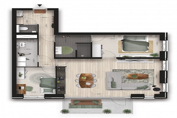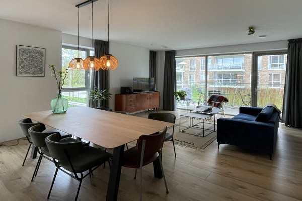 Dit ruime appartement ligt op de eerste verdieping van het complex. De moderne, witte keuken is voorzien van een koel-vriescombinatie, oven met magnetronfunctie, inductiekookplaat en vaatwasser. De badkamer heeft een inloopdouche en een dubbele wastafel met spiegel. Het toilet met fontein is apart. Vanuit de lichte woonkamer stap je zo het ruime balkon op. Daarnaast is er een grote berging binnen het appartement.