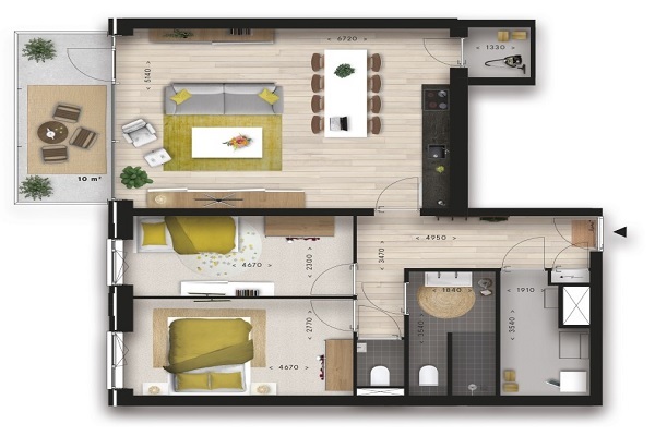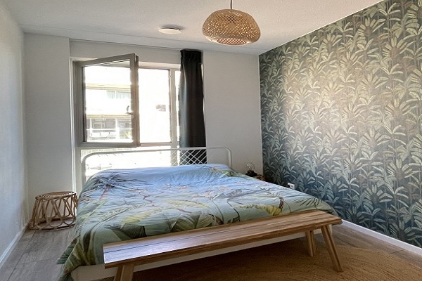 Dit ruime appartement ligt op de eerste verdieping van het complex. De moderne, witte keuken is voorzien van een koel-vriescombinatie, oven met magnetronfunctie, inductiekookplaat en vaatwasser. De badkamer heeft een inloopdouche en een dubbele wastafel met spiegel. Het toilet met fontein is apart. Vanuit de lichte woonkamer stap je zo het ruime balkon op. Daarnaast is er een grote berging binnen het appartement.