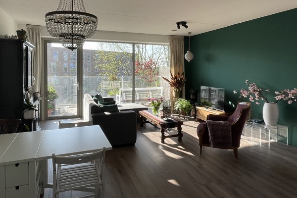 Dit ruime 3-kamer appartement bevindt zicht op de 4e etage. De L-vormige witte keuken is voorzien van koel/vriescombinatie, oven met magnetronfunctie, inductie kookplaat en een vaatwasser! De moderne badkamer is voorzien van een inloopdouche en een dubbele wastafel met spiegel. Het zwevend toilet met fontein bevindt zich in een aparte ruimte. Het appartement heeft een groot balkon die via de riante woonkamer te betreden is. Daarnaast is dit appartement voorzien van een ruime binnenberging!