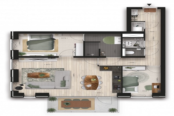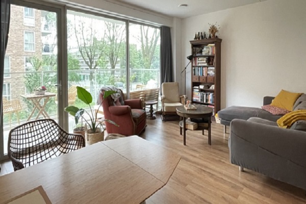 Dit ruime appartement ligt op de eerste verdieping van het complex. De moderne, witte keuken is voorzien van een koel-vriescombinatie, oven met magnetronfunctie, inductiekookplaat en vaatwasser. De badkamer heeft een inloopdouche en een dubbele wastafel met spiegel. Het toilet met fontein is apart. Vanuit de lichte woonkamer stap je zo het ruime balkon op. Daarnaast is er een grote berging binnen het appartement.