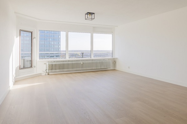 Indeling Begane grond: gemeenschappelijke entree, intercominstallatie, lift, ruime berging. 13e verdieping: ruime hal met meterkast, toilet met fonteintje, grote bergkast met boiler t.b.v. het warme water in de badkamer en keuken. Geheel betegelde badkamer voorzien van inloopdouche, wastafel en wasmachine- droger aansluiting. Toegang naar de lichte, ruime woonkamer met open keuken. De toegang naar het balkon is vanaf de woonkamer. De nieuwe, luxe keuken is voorzien van diverse inbouwapparatuur zoals inductiekookplaat, koelvriescombinatie, afzuigkap, combi-oven en afwasmachine. Het aanrecht is gemaakt van composiet. Verder zijn er twee ruime slaapkamers waarvan één voorzien is van een ruime inloopkast. Uitstekend geschikt voor studenten, woningdelers of werkende expats