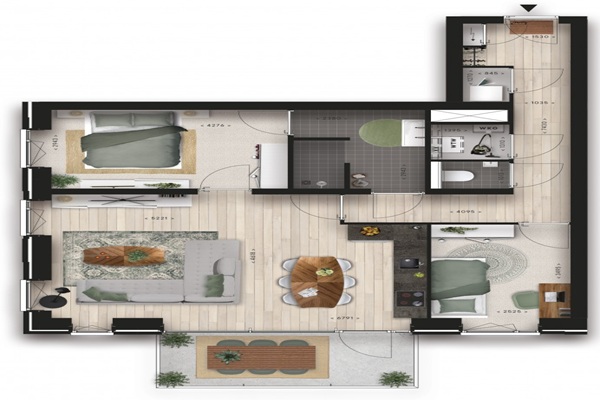 Dit ruime appartement ligt op de eerste verdieping van het complex. De moderne, witte keuken is voorzien van een koel-vriescombinatie, oven met magnetronfunctie, inductiekookplaat en vaatwasser. De badkamer heeft een inloopdouche en een dubbele wastafel met spiegel. Het toilet met fontein is apart. Vanuit de lichte woonkamer stap je zo het ruime balkon op. Daarnaast is er een grote berging binnen het appartement.