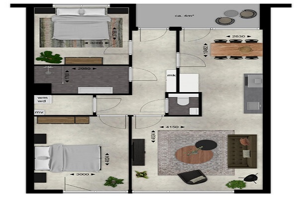 Indeling: Entree, lichte woonkamer met toegang tot een balkon waar u heerlijk kunt ontspannen, luxe open keuken voorzien van kookplaat, afzuigkap, combimagnetron, koel-vriescombinatie en vaatwasser. Twee slaapkamers, badkamer met inloopdouche en wastafel, apart toilet met wastafel en een berging met aansluiting voor een wasmachine.