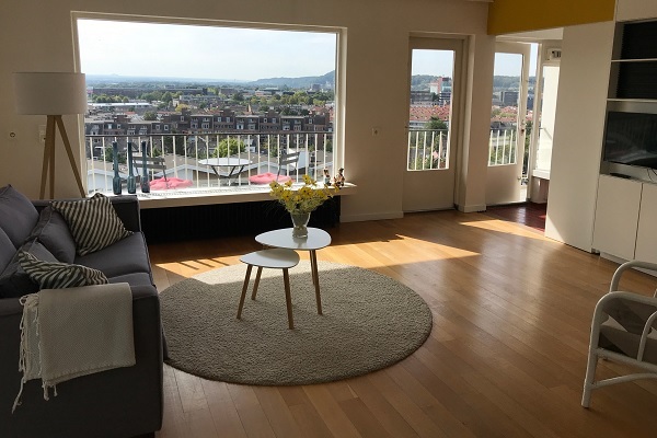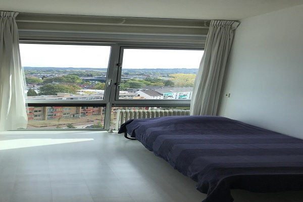 Via de centrale hal, brengt de lift u naar de 10de verdieping alwaar dit appartement is gelegen. Bij binnenkomst treft u de hal (8m²) die toegang geeft tot de 2 slaapkamers (resp. 13m² en 9,5m²), het separaat gelegen gastentoilet, de badkamer (5m²) v.v. een ligbad, een inloopdouche met regenshower en een moderne wastafel. De woonkamer (35,5m²) geeft middels de grote glazen pui een schitterend uitzicht. De half open keuken (12m²) is af te sluiten en is v.v. alle moderne apparatuur zoals een heteluchtoven, een magnetron, een vaatwasser, een combinatie ijskast-vriezer, een ijskast en keramische kookplaat. Vanuit de keuken of woonkamer kunt u het balkon (10m.²), dat op het Zuiden is gelegen, betreden.