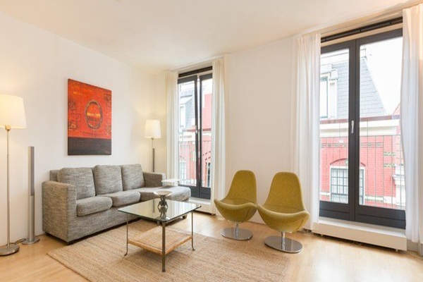 Indeling: Gemeenschappelijke entree op straatniveau, lift en trap naar de derde verdieping: entree appartement, hal, meterkast, modern separaat toilet, berging met wasmachine en droger, ruime L-vormige woonkamer met schuifpui naar het zonnige terras met prachtig uitzicht over de stad. Prachtige Siematic open keuken voorzien van diverse inbouwapparatuur waaronder keramische kookplaat, elektrische oven, vaatwasser en koelkast, moderne badkamer met ligbad, douche, wastafel en toilet, twee ruime slaapkamers. Het gehele appartement, met uitzondering van de sanitaire ruimtes, is voorzien van fraaie houten parketvloeren.