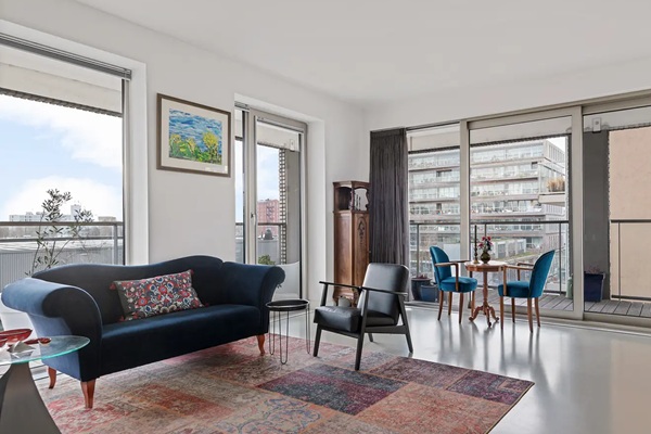 Indeling: Gemeenschappelijke entree met een ruime hal, trappenhuis en lift. Entree appartement op de derde verdieping, hal met garderobe-ruimte. De royale woonkamer heeft een speelse indeling en hoge ramen met meerdere balkondeuren en een dubbele schuifpui. Zodra je deze opent, lopen de woonkamer en het grote, zeer zonnig gelegen en overdekte terras (42 m²) naadloos in elkaar over – perfect voor lange zomeravonden en etentjes buiten. De moderne, halfopen woonkeuken met alle inbouwapparatuur biedt volop werk- en bergruimte en grenst aan een handige (provisie)bergkast. Het appartement beschikt over drie ruime slaapkamers, allemaal met hoge ramen en veel lichtinval. De badkamer is compleet met ligbad, inloopdouche en wastafel. Daarnaast is er een separaat toilet en een extra ruimte waar de wasmachine is gesitueerd. De woning is uitstekend geïsoleerd en voorzien van vloerverwarming én -koeling via een duurzaam warmte-/koude-opslagsysteem.