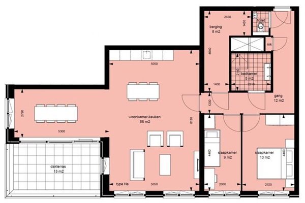 Gezamenlijke entree; lift naar 5e verdieping; voordeur. Binnenkomst in de hal. Links bevinden zich de 2 ruime slaapkamers Aan de rechterzijde de badkamer voorzien van inloopdouche, handdoekradiator en wastafelmeubel. Hiernaast apart toilet. Aan het einde van de gang bevind zich de zeer ruime woonkamer met hoge ramen, toegang tot ruim zonnig balkon en open keuken voorzien van koelkast met vriesvak, gasfornuis, afzuigkap, combi oven-magnetron en vaatwasser. Opberghok naast de badkamer met wasmachine aansluiting. Beschikbaar voor werkend persoon of stel