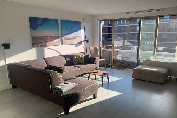 Indeling Via de verzorgde gemeenschappelijke entree met lift bereik je het appartement. De ruime hal geeft toegang tot alle vertrekken. De lichte woonkamer staat in open verbinding met de eetkamer en biedt dankzij de grote raampartijen een prettige lichtinval. Vanuit de woonkamer is er toegang tot het ruime balkon (ca. 14 m²), ideaal om te ontspannen of te dineren. De open keuken is luxe uitgevoerd en voorzien van moderne inbouwapparatuur, waaronder een kookplaat, oven, magnetron, vaatwasser, koelkast en vriezer. De strakke afwerking en het royale werkblad maken de keuken zowel praktisch als stijlvol. De woning beschikt over twee goed bemeten slaapkamers, beide geschikt als master bedroom, werk- of logeerkamer. De moderne badkamer is uitgevoerd met een ruime inloopdouche, dubbele wastafel met meubel en hoogwaardige betegeling. Daarnaast is er een separaat toilet. Het ruime balkon van circa 14 m² biedt voldoende plek voor een zit- en eethoek en vormt een fijne verlenging van de leefruimte.