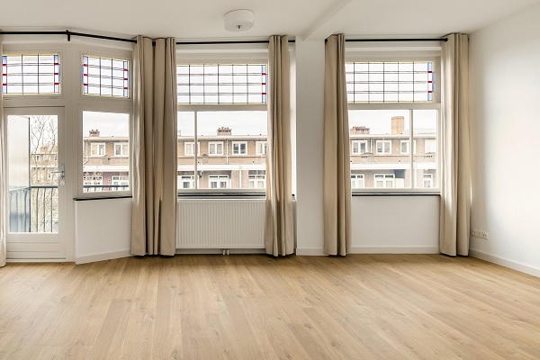 INDELING: Entree op de derde etage, vanuit hal toegang tot alle vertrekken. De ruime en lichte woonkamer (6m breed) met openkeuken en grote raampartijen voorzien van glas en lood Vanaf het balkon heeft u uitzicht over de rustige straat. De luxe afgewerkte open keuken is voorzien van een hardstenen blad, spoelbak, gasfornuis met afzuigkap, combi over/magnetron en een vaatwasser. U hoeft enkel een eigen koelkast neer te zetten. De badkamer is voorzien van een inloopdouche, wastafelmeubel, wc en wand radiator. Er is een aparte kast voor de wasmachine/droger. De twee slaapkamers zijn beide gelegen aan de achtergevel, beide geven toegang tot het ruime balkon over de gehele breedte van de woning. Te huur voor maximaal 2 personen
