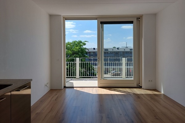 Via het ruime trappenhal bereik je de voordeur van dit moderne appartement. Deze woning is gelegen op de derde etage. De woonkamer beschikt over een open keuken voorzien van 4-pits gasfornuis en afzuigkap. Het leuke, zonnige balkon grenst aan de woonkamer. Via de hal kom je in de badkamer welke is uitgevoerd met een douche, wastafel, toilet en designradiator. De woning heeft 1 slaapkamer. De woning beschikt over een eigen parkeerplek en een eigen fietsenberging, gelegen achter het complex.