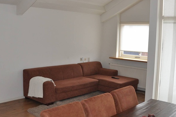 Entree v.v. een fraaie laminaatvloer en geheel betegeld toilet. Ruime slaapkamer v.v. een laminaatvloer en doorloop naar een geheel betegelde badkamer v.v. een ligbad, wastafel en aansluiting wasmachine. Fraaie ruime woonkamer met een extra hoog plafond v.v. een laminaatvloer met openslaande deuren naar terras. Luxe moderne keuken in dubbele wandopstelling v.v. diverse inbouwapparatuur.