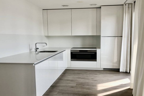 Indeling: Entree/hal (ca. 5 m²), separaat toilet (ca. 1,5 m²) en wasruimte/berging (ca. 1,8 m²). Moderne badkamer (ca. 3,8 m²) voorzien van ligbad, douche en wastafel. Ruime woon-/eetkamer (ca. 20 m²) met veel lichtinval. De luxe keuken (ca. 6 m²) is uitgerust met een koelkast, vaatwasser, spoelbak, combimagnetron, afzuigkap en een 4-pits keramische kookplaat. Het appartement beschikt over één slaapkamer (ca. 13 m²) en een balkon (ca. 7 m²). Het gehele appartement is voorzien van een vloer, vloerverwarming, ingebouwde kastenwanden en witte overgordijnen. In het souterrain bevindt zich een privéberging. Indien beschikbaar is er de mogelijkheid om een parkeerplaats onder het complex te huren. Daarnaast is er vergunningsparkeren langs de straatzijde.