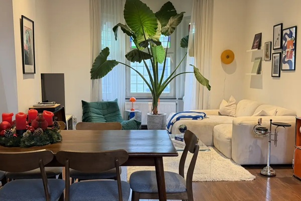 Eigen gewelfde kelder voorzien van elektra. De kelder is via je eigen entreehal bereikbaar. Gezamenlijke entree met het naastgelegen appartement naar de centrale ontvangsthal met fraaie glas in lood deuren. Eigen meterkast. Algemene containerruimte. Toegangsdeur naar het appartement en een eigen hal met toegang naar de kelder en een trap naar de woonverdieping. In deze hal is genoeg ruimte voor een grote kapstok, schoenenkast of je mountainbike. Trappenhuis naar overloop met gastentoilet en de living van ca. 31 m². De woonkamer met open keuken heeft een typische jaren '30 erker met glas-in-loodwerk. In een hoekopstelling is de moderne keuken ingebouwd, die beschikt over een inductiekookplaat, afzuigkap, combi-magnetron met stoomfunctie, vaatwasser en een koelkast. Naast de keuken vind je de handige bergkast waar plaats is voor extra proviand, een stofzuiger en de wasmachine. Het gastentoilet is voorzien van een tegelvloer en een fonteintje. Trap naar de tweede verdieping: Royale overloop naar de 2 slaapkamers die dit appartement te bieden heeft. De kleine slaapkamer meet slechts ca. 5,50 m². De grote slaapkamer is juist heel ruim met een oppervlakte van ca. 20 m². Ook hier is een fraaie erkerpartij aanwezig. De badkamer uit 2005 is hoogwaardig ingericht en heeft een tweede toilet, wastafelmeubel en een ruime inloopdouche met natuursteen wanden. Trap naar de derde verdieping: Het trappenhuis leidt naar een kleine hal met toegangsdeur naar het riante dakterras. Geniet hier in alle privacy van het zonnetje en van het weidse uitzicht over de historische binnenstad! -Maximaal een 2-persoonshuishouden gewenst. -Vanwege de kleine tweede slaapkamer is dit appartement niet geschikt voor kinderen of 2 vrienden die samen willen huren.
