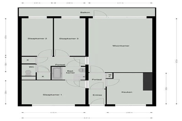 INDELING Via de entree met bellentableau en postvakken kom je bij het trappenhuis en de liften. Hal/entree (3.90 x 1.10), slaapkamer 1 (4.10 x 3.00 ); woonkamer met half open keuken (4.30 x 2.90 cm), voorzien van de benodigde apparatuur. Balkon over de gehele breedte van het appartement met schitterend uitzicht. Tussenhal (ca. 5 m2); slaapkamer 2 en slaapkamer 3. Badkamer (2.20 x 1. 80) met ligbad met douchegedeelte, badkamermeubel met spiegel. Separaat toilet. Bergkast en aparte ruimte van witgoed aansluitingen.