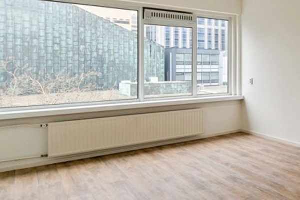 Indeling: Het appartement is toegankelijk via een afgesloten entree met brievenbussen en lift. Bij binnenkomst in het appartement kom je in de hal die toegang biedt tot alle vertrekken. De lichte woonkamer heeft grote ramen en een neutrale vloer. De aparte keuken is voorzien van boven- en onderkasten, een aanrechtblad en standaard inbouwapparatuur. Het appartement heeft een woonoppervlakte van circa 81 m2, één ruime slaapkamer en een betegelde badkamer. Er is een separaat toilet aanwezig. Vanuit de woonkamer is er een prettig stads uitzicht over de omliggende gebouwen in het centrum van Rotterdam – met winkels, restaurants en openbaar vervoer allemaal op loopafstand.