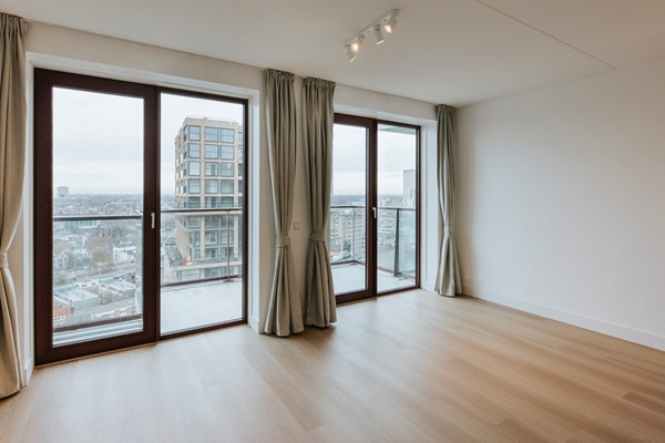 Indeling Via de gezamenlijke entree bereikt u de 18e verdieping waar het appartement is gelegen. Bij binnenkomst komt u in de hal, die toegang biedt tot alle vertrekken. De ruime en lichte woonkamer is voorzien van grote raampartijen en biedt een prachtig uitzicht over de stad. De open keuken sluit naadloos aan op de woonkamer en is uitgerust met moderne inbouwapparatuur. Het appartement beschikt over twee slaapkamers, beide van goed formaat en geschikt als hoofd- en logeer- of werkkamer. De moderne badkamer is strak afgewerkt en voorzien van een inloopdouche en wastafelmeubel. Daarnaast is er een apart toilet en een aparte ruimte voor wasmachine en droger. Het gehele appartement is netjes afgewerkt en gestoffeerd. Geschikt voor een alleenstaande, een stel of een gezin; het appartement is ook ideaal voor twee woningdelers;