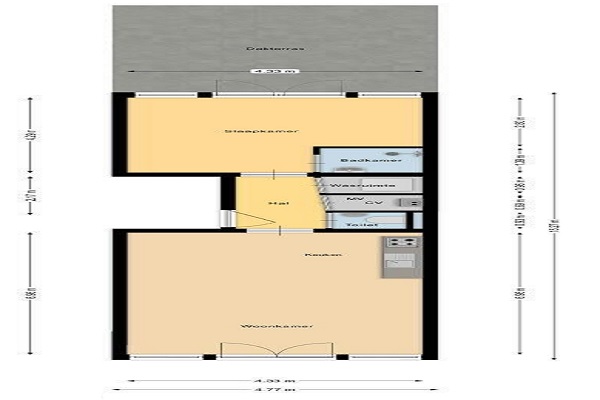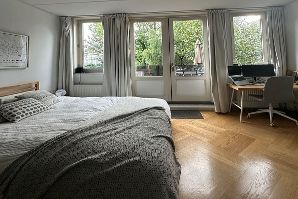 Indeling De open keuken met inbouwapparatuur beschikt over voldoende kastruimte en grenst aan de woonkamer. De keuken is voorzien van een vaatwasser, een koelkast met vriezer, een combimagnetron, een gasfornuis en een afzuigkap. De woonkamer is gelegen aan de straatkant. Direct naast de slaapkamer bevindt zich de badkamer, welke bestaat uit een inloopdouche, wastafel met spiegel en radiator. Tussen de woon- en slaapkamer is een hal met toiletruimte en separaat washok. Het prachtige dakterras ligt pal aan de achterzijde van de slaapkamer. Tot slot beschikt het appartement op de begane grond, in de gemeenschappelijke tuin, over een fietsenberging. -Niet geschikt voor woningdelers en studenten