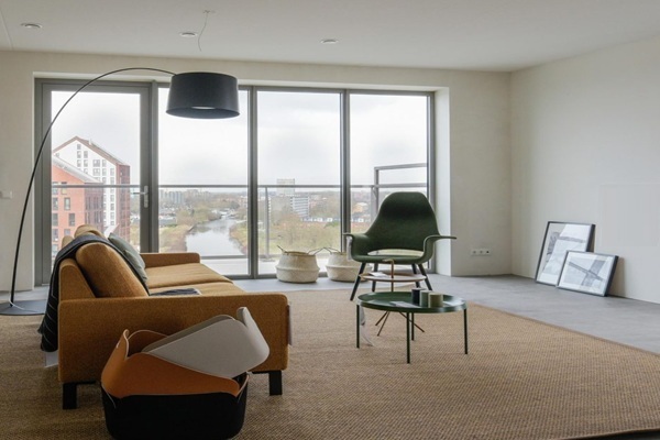 Het 3-kamerappartement van 89 m² ligt op de tiende verdieping en biedt een lichte, ruime woonkamer met moderne keuken voorzien van inductiekookplaat, bakoven, koel-/vriescombinatie en geïntegreerde vaatwasser. De badkamer is compleet met inloopdouche, ligbad, wastafelmeubel en designradiator. Daarnaast zijn er een separaat toilet, handige berging/bijkeuken en een extra kamer die ideaal is als werk-, hobby- of logeerkamer. Het balkon op het zuidwesten biedt prachtig zicht.