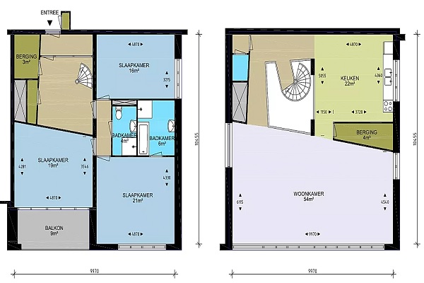 De entree bevindt zich op de 12e verdieping. Hier tref je een ruime overloop met toegang tot maar liefst drie goed bemeten slaapkamers van circa 16 m², 19 m² en 21 m². Eén van de slaapkamers heeft directe toegang tot het balkon, een fijne plek om buiten te zitten en te genieten van het uitzicht. Op deze verdieping bevinden zich tevens twee badkamers, waarvan één met ligbad en wastafel en één met douche en wastafel. Het toilet is separaat. Daarnaast is er een praktische berging op deze woonlaag. Via de interne trap bereik je de 13e verdieping, waar zich het woongedeelte bevindt. De royale woonkamer van circa 54 m² is heerlijk licht dankzij de grote raampartijen en biedt volop ruimte voor een comfortabele zithoek en eethoek. Aangrenzend ligt de ruime keuken van circa 22 m², voorzien van diverse inbouwapparatuur en voldoende kastruimte. Ook op deze verdieping is een extra berging aanwezig, ideaal voor voorraad of huishoudelijke spullen. De woning maakt deel uit van een verzorgd complex met lift en parkeergarage. Het huren van een parkeerplaats behoort tot de mogelijkheden.