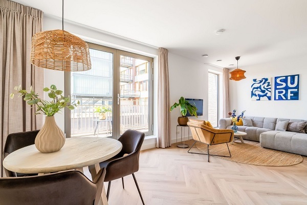 Indeling: via de of trap of de lift kom je bij het appartement op de 2e etage. Gang met W.C., videophone technische ruimte en wasmachine, woonkamer met volledig uitgeruste open keuken en balkon, slaapkamer met luxe badkamer met design radiator en badkamermeubel. Inpandige privé parkeerplaats en gemeenschappelijke fietsenberging.