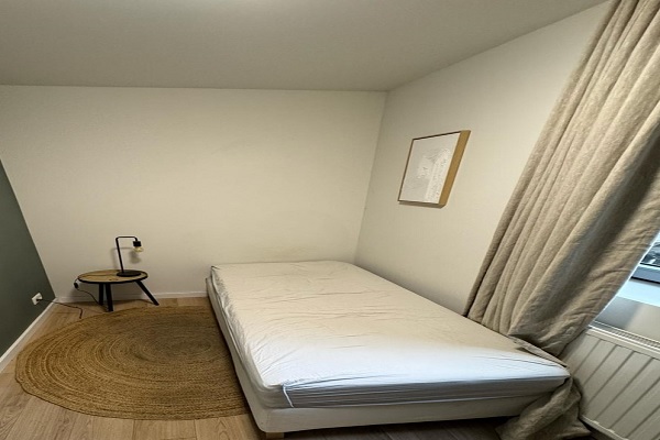 Indeling : Entree, ruime woonkamer (ca. 28 m2) met open keuken voorzien van inductieplaat, afzuigkap, koelkasten met vriesvak. Het appartement heeft 2 slaapkamers van ca. 10 m2 en 9m2; een werkkamer (ca 8m2) en een berging (2 m2). De badkamer is voorzien van een 2 vaste wastafels en een douche. Er is een afzonderlijk toilet.
