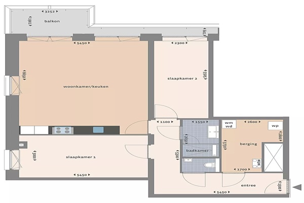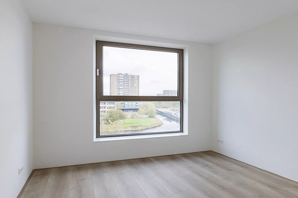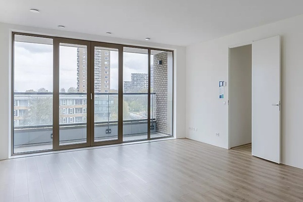 De woonkamer is licht en ruim, met grote raampartijen die veel natuurlijk daglicht binnenlaten. De open keuken sluit hier mooi op aan en is uitgevoerd in wit met een zwart composieten aanrechtblad. Dankzij de Siemens-inbouwapparatuur, waaronder een inductiekookplaat, afzuigkap, combimagnetron/oven, vaatwasser en koel-vriescombinatie, is koken hier een feest. Het oostelijk gelegen balkon is bereikbaar vanuit de woonkamer en biedt een fijne plek om ’s ochtends in de zon te zitten. Daarnaast heeft de woning een interne berging, ideaal voor extra opslag of als wasruimte. Twee slaapkamers en een stijlvolle badkamer De twee slaapkamers zijn goed van formaat en flexibel in te delen – perfect als slaapkamer, werkkamer of logeerkamer. De badkamer is volledig betegeld en voorzien van een inloopdouche, brede wastafel met spiegel, elektrische radiator en comfortabele vloerverwarming. Het aparte toilet bevindt zich naast de badkamer.