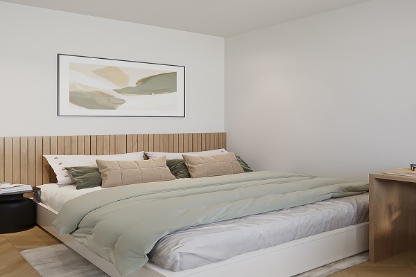 Indeling Via de centrale entree op de begane grond brengt de lift je naar het dakniveau, waar je uitkomt op het gezamenlijke dakterras en de voordeur van de woning. Binnen leidt de hal naar twee slaapkamers, de badkamer, een separaat toilet, een inpandige berging en de lichte woonkamer met open keuken. Vanuit de woonkamer heb je direct toegang tot het dakterras.