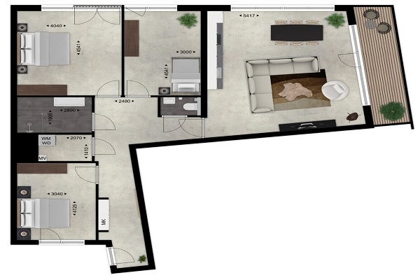 Indeling: Entree, lichte woonkamer met toegang tot balkon waar je heerlijk kunt zitten, luxe open keuken voorzien van een kookplaat, afzuigkap combi magnetron, koelkast met vriesvak en vaatwasser. Drie slaapkamers, badkamer met inloopdouche en wastafel, apart toilet met fontein en een berging die voorzien is van een wasmachine aansluiting.