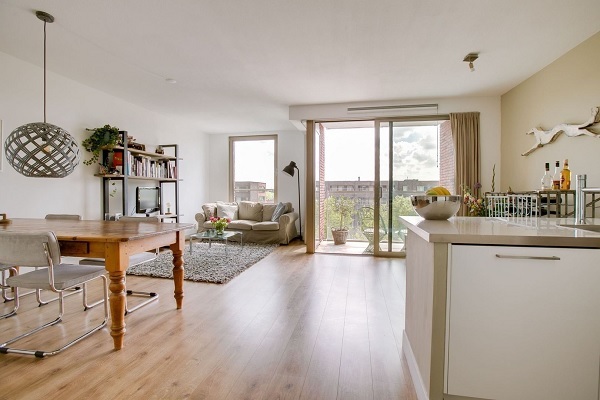 Indeling Afgesloten entree met videofoon aan zowel voor- als achterkant, ruime hal, trapportaal en twee liften. Gemeenschappelijke fietsenstalling. 1e verdieping: Afgesloten parkeerdek met eigen overdekte parkeerplaats (verplichte afname). Entree, woonkamer met prachtig uitzicht. Vanaf deze verdieping heeft u prachtig vrij uitzicht. In de woonkamer is nog een royale, praktische vaste bergkast en de woonkamer heeft een schuifpui die toegang geeft tot het ruime balkon (5,5 m²) gelegen op het zuidwesten. Moderne open keuken (wit hoogglans) met (water)eiland met voldoende ruimte om gezellig aan te zitten. Verder is de keuken voorzien van diverse apparatuur waaronder een combi-oven, afzuigkap, 4 pits gaskookplaat, koel/vries combinatie en vaatwasser. Aan de achterzijde zijn de twee slaapkamers gelegen waarvan 1 is ingericht als walk-in closet. Vanuit de hal is er toegang tot een separaat toilet met fonteintje. De ruime, nette badkamer is voorzien van een wastafelmeubel, wasmachine/droger aansluiting en radiator. Voorkeur voor werkende alleenstaande of een stel
