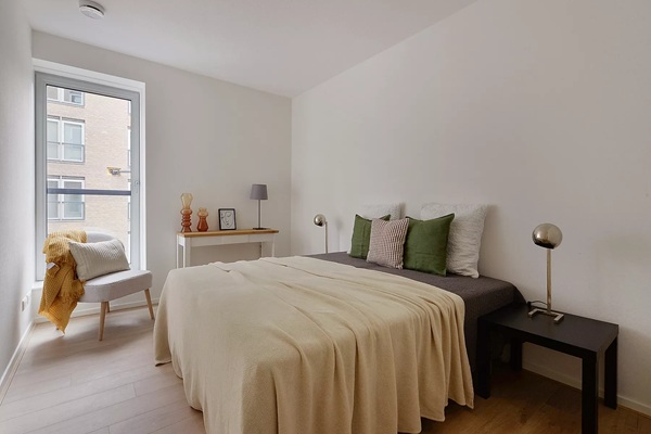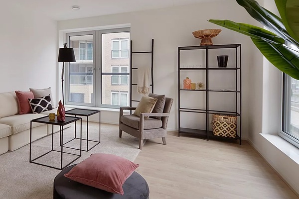 De woonkamer is ruim en licht en vormt samen met de open keuken een prettige leefruimte. Door de open opzet voelt het appartement ruim aan en is er volop plek om het naar eigen smaak in te richten. De open keuken is modern uitgevoerd en voorzien van inbouwapparatuur, waaronder een inductiekookplaat, combimagnetron, vaatwasser en een koelkast met vriesvak. Praktisch ingedeeld en netjes afgewerkt. Het appartement beschikt over twee slaapkamers. De hoofdslaapkamer is ruim en comfortabel, de tweede slaapkamer is perfect als werkplek, logeerkamer of kinderkamer. De badkamer heeft een luxe uitstraling en is uitgerust met een inloopdouche, wastafel en toilet. Alles is strak en verzorgd afgewerkt. Het appartement beschikt over een terras, een fijne plek om buiten te zitten. Daarnaast is de woning volledig voorzien van vloerverwarming, wat zorgt voor extra comfort in alle ruimtes. In de ondergrondse parkeergarage zijn parkeerplaatsen te huur.