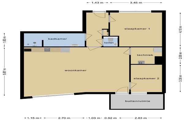 Indeling Via de entree bereikt u de hal, die toegang biedt tot alle vertrekken. Aan de voorzijde bevinden zich twee comfortabele slaapkamers. Verder beschikt het appartement over een separaat toilet met fonteintje en een moderne badkamer met wastafel, inloopdouche en handdoekradiator. Aan het einde van de hal komt u in de lichte woonkamer met aangrenzend de moderne open keuken. De keuken is uitgevoerd met een antraciet kunststof werkblad en voorzien van luxe inbouwapparatuur, waaronder een koelkast met vriesvak, combimagnetron, vaatwasser, inductiekookplaat en afzuigkap. Vanuit de woonkamer heeft u directe toegang tot het eigen terras, een heerlijke plek om te ontspannen en te genieten van het buitenleven. Dit appartement ligt op de eerste verdieping.
