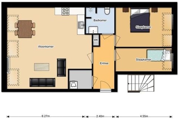 Centrale hal met eigen berging en met trapopgang naar de 1e verdieping alwaar de entree van het appartement is gelegen, hal met videofoonsysteem, wasruimte met CV-opstelling, lichte en sfeervolle woonkamer, open keuken met moderne L-inbouwkeuken welke is v.v. diverse inbouwapparatuur, 2 slaapkamers en een moderne geheel betegelde badkamer met inloopdouche met spatmuren, wandcloset en badkamermeubel met wastafel.