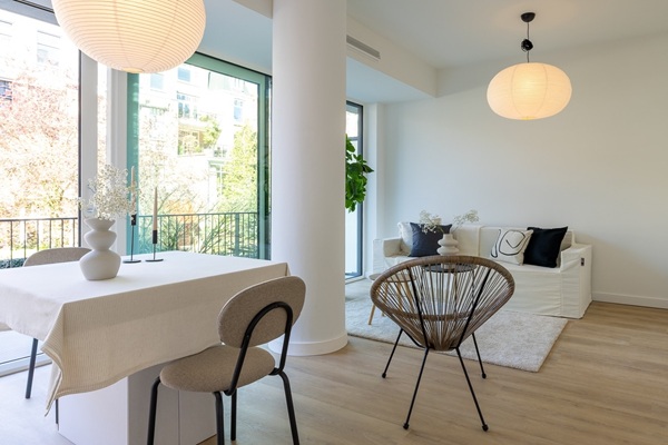 Indeling Gesloten entree met toegang tot het bellentableau, de brievenbussen en de liften. Via de trapopgang of liften bereikt u de bovengelegen verdiepingen. Vanuit de hal is er toegang tot alle vertrekken. In de gang bevindt zich een klein berghok waar wasmachine uitsluiting zit, daarnaast bevindt zich het toilet met fonteintje. De open keuken is voorzien van een vaatwasser, oven, inductieplaat en koelkast. De woonkamer is ruim opgezet en geniet van veel lichtinval dankzij de grote raampartijen en het brede balkon aan de achterzijde. Via schuifdeuren is het balkon te betreden. Aansluitend ligt de slaapkamer met tevens toegang tot het brede balkon. De badkamer is voorzien van een wastafel met wastafelmeubel en douche. De woning is niet geschikt voor woningdelers