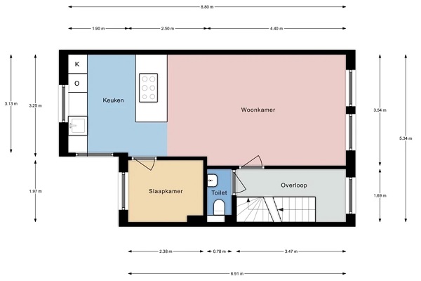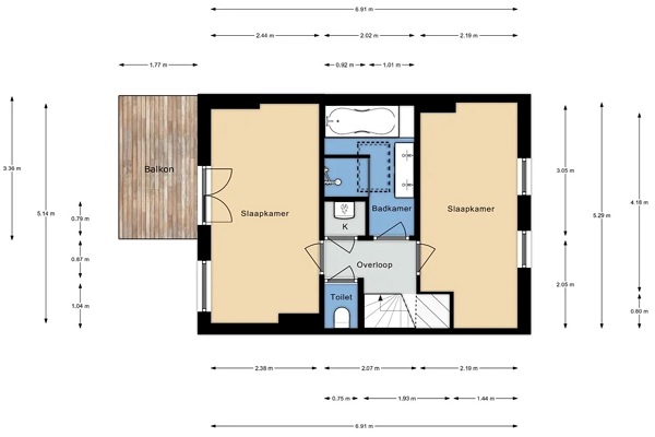 Indeling Entree op straatniveau, trap naar de eerste verdieping. Woonkamer met luxe en moderne, open keuken met (ontbijt)bar en inbouwapparatuur. Woon-/eetkamer met visgraatparketvloer en grote ramen. Studeerkamer of eerste slaapkamer. Toilet met wastafel. Trap naar boven. Lichte hoofdslaapkamer met grote openslaande deuren naar het terras. Terras met houten vlonder en comfortabele loungeset. Tweede slaapkamer. Moderne badkamer met inloopdouche, bad, wastafel met opbergruimte en spiegel en handdoekradiator. Apart toilet. Houten vloeren en dubbele beglazing door het hele huis.