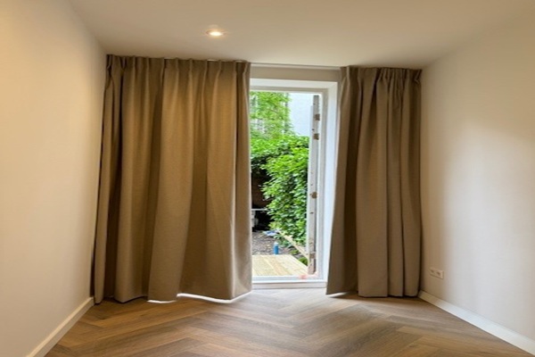 Niet geschikt om te delen | garanten Indeling Eigen entree op de begane grond, 2 grote ramen aan de voorzijde met uitzicht op de gracht en woonboten. Het appartement heeft een speelse indeling, aan de voorzijde is het perfect om uw eettafel te plaatsen en achter de keuken heeft u een intiem woonkamergedeelte met inbouwkasten. De keuken is gelegen in het hart van het appartement en uitgevoerd in stijlvol hoogglans wit en beschikt over alle inbouwapparatuur zoals een inductiekookplaat met ingebouwde afzuigkap, koelkast en aparte vriezer en een vaatwasser allen van BOSCH. De badkamer is voorzien van een toilet, wastafel en een inloopdouche. Het appartement is voorzien van een wasmachine en droger. Aan de achterzijde heb je twee slaapkamers waarvan er één geschikt is voor een tweepersoonsbed van 1.60-1.80 en de andere perfect geschikt is voor een kinder/studeerkamer. Beide kamers hebben ingebouwde kasten en directe toegang tot de prachtige groene tuin. De tuin krijgt kunstgras maar is al heerlijk groen door de prachtige klimop op de schuttingen. Als klap op de vuurpijl is er een open opslagruimte van ca. 10 m² op de bovenste verdieping (bereikbaar via een andere trap).