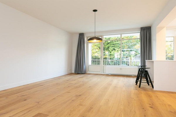 Indeling: Gesloten hoofdentree in rustig portiek met 3 andere appartementen. Hal met trap naar verhoogde parterre. Entree appartement, ruime hal met betegelde inbouwkast waarin wasmachine en droger staan opgesteld, separaat toilet met fonteintje, meterkast en toegang tot de overige ruimtes. Zeer lichte en ruime woonkamer en-suite met schuifdeuren en twee vaste kasten en voorzien van een houtenvloer. Een zeer lux uitgeruste open keuken, onder andere voorzien van Siemens apparatuur (vaatwasser, koelkast, vriezer, oven, magnetron, 5-pits inductie kookplaat) en een kraan met kokend waterfunctie. De ruime hoofdslaapkamer bevindt zich aan de achterkant van het appartement en heeft net als de woonkamer en keuken toegang tot het ruime zonneterras van circa 20 m2, met 2 balkonkasten, buitenkraan en buitenelektra. De tweede slaapkamer heeft een inbouwkast. Moderne en luxe badkamer met inloopdouche, wastafel en handdoekradiator. Zowel in de kelder als op de topverdieping van het complex beschikt de woning over een eigen afgesloten berging van respectievelijk 6 m2 en 15m2. De topverdieping is te bereiken met een lift.