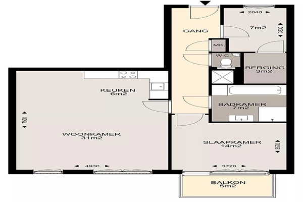 3-kamerappartement met een oppervlakte van 82 m2. Het appartement beschikt over een lichte woonkamer van 31 m2 met toegang tot het balkon van 5 m2. Het appartement heeft 2 slaapkamers. De ene slaapkamer is 14 m2 en de andere slaapkamer is 7 m2. Hier kun je bijvoorbeeld ook een prima werk- en/of studeerkamer van maken. De keuken is uitgerust met diverse inbouwapparatuur. De badkamer is luxueus uitgevoerd met een ligbad, douche en wastafel. Tevens tref je een aparte berging in het appartement welke is voorzien van een aansluiting voor jouw wasmachine en/of droger. Op de begane grond heb je nog een aparte berging en een parkeerplaats in de parkeergarage.