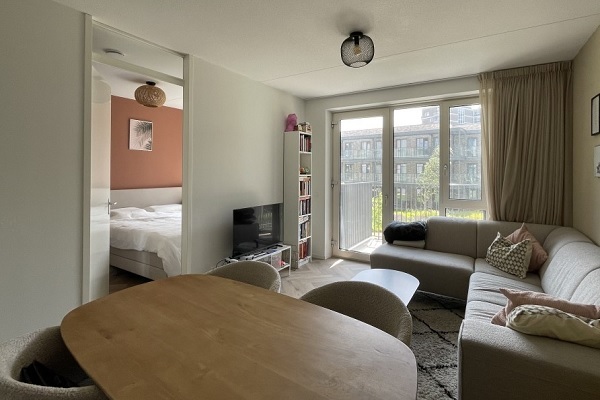 Indeling Je komt binnen in de hal met toegang tot de technische ruimte wat tevens ook als inpandige berging dient.. De woonkamer is voorzien van een moderne keuken die beschikt over inbouwapparatuur, waaronder een inductie kookplaat, combi oven/magnetron, afzuigkap, vries/koelcombinatie en vaatwasmachine. Dit appartement beschikt over een aparte slaapkamer. De badkamer is uitgerust met een wastafel met spiegel, zwevend toilet, glazen douchewand en een handdoekradiator. Daarnaast heb je ook nog een een eigen balkon!