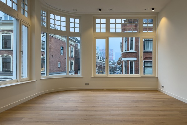 Indeling Begane grond trap of lift naar de eerste etage. Eigen voordeur, hal met toegang tot alle vertrekken. Zeer ruime slaapkamer met genoeg ruimte voor 2 persoons bed, kast en een bureau. Badkamer ligt aan de overkant van de gang, badkamer is zeer luxe, voorzien van een inloop douche, dubbele wastafel en een design radiator. Aan de voorzijde de woonkamer, echt een prachtig ruime en lichte woonkamer met open keuken.