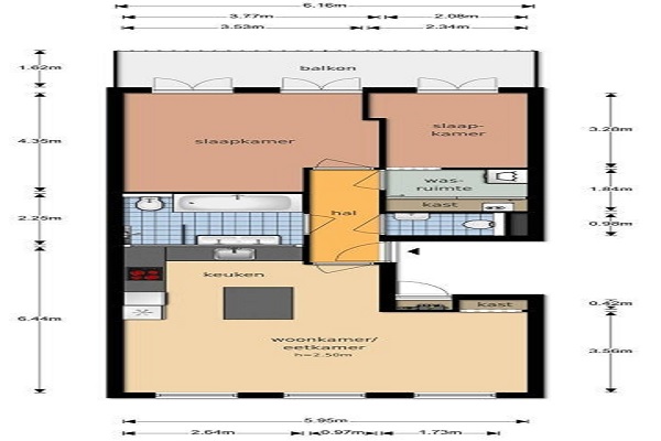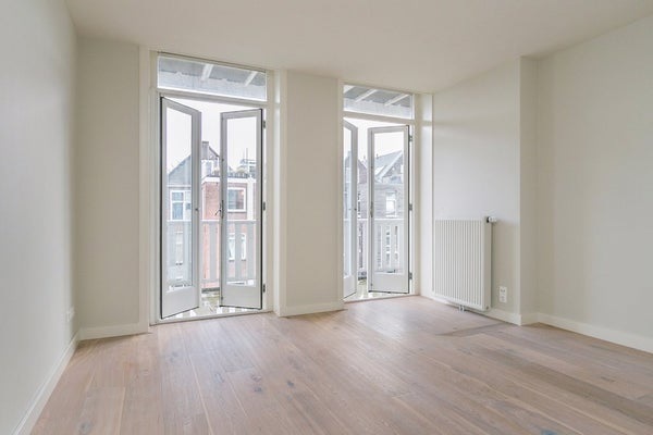 Entree appartement op de 3e verdieping in de hal. Lichte woonkamer aan de voorzijde van het appartement. 3 ramen breed, waardoor er veel natuurlijk licht binnenkomt. Luxe open keuken met diverse inbouwapparatuur, waaronder een vaatwasser, magnetron, oven, wijnkoeler en inductiekookplaat. Beide (slaap)-kamers bevinden zich aan de rustige achterzijde van het appartement, en beide kamers geven toegang tot het balkon van ca. 10m2. De ruime badkamer heeft een inloop (regen)douche, een ligbad, bidet en wastafel. Het appartement heeft een apart toilet en een wasruimte met wasmachine en droger.