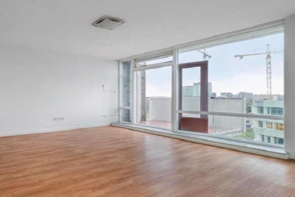 Vanuit de ruime centrale entree bereikt u via de lift het appartement op de achtste verdieping. Vanuit de hal is er toegang tot alle vertrekken, waaronder beide slaapkamer, de badkamer (voorzien van douche, toilet en dubbele wastafel), de keuken en de heerlijk lichte woonkamer met een ruim balkon, gelegen op het Zuiden met uitzicht over de Zuid-as. De afgesloten keuken is voorzien van veel inbouwapparatuur, en biedt toegang tot een tweede balkon gelegen op het Oosten met uitzicht over het Beatrixpark. In de onderbouw beschikt het appartement over een aparte berging. Op de negende etage, met lift bereikbaar, bevindt zich nog een groot gemeenschappelijk dakterras. Het appartement wordt ongemeubileerd verhuurd.
