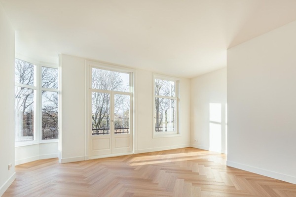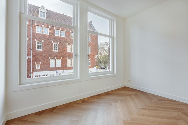 Volledig gerenoveerd appartement gelegen op de eerste verdieping, de woning wordt met een laminaatvloer en nieuw schilderwerk opgeleverd. De woning is beschikbaar voor 2 woning delers. Via de entree op de eerste verdieping betreed je de woning via de centrale hal die toegang biedt tot alle vertrekken. Aan de voorzijde bevindt zich de ruime en lichte woonkamer, met een karakteristieke erker en grote raampartijen. De kamer heeft een open indeling en biedt via dubbele deuren toegang tot het balkon aan de straatzijde. Aangrenzend ligt de keuken, welke is opgesteld in een praktische, langgerekte indeling en beschikt over de benodigde aansluitingen en werkruimte. Aan de rustige achterzijde van het appartement bevinden zich twee ruime slaapkamers. De grootste slaapkamer ligt rechts en biedt voldoende plek voor een groot bed en kastruimte. De tweede slaapkamer ligt links en beschikt over openslaande deuren naar het balkon, met uitzicht op de binnentuinen. De badkamer is centraal gelegen en voorzien van een douche en wastafel. Daarnaast is er een separaat toilet en een CV-ruimte in de hal. Een extra kast biedt plek voor de meterkast en opbergruimte. Kortom: een licht, ruim ingedeeld appartement met twee goede slaapkamers en twee balkons, gelegen op een aantrekkelijke locatie.