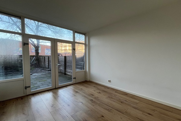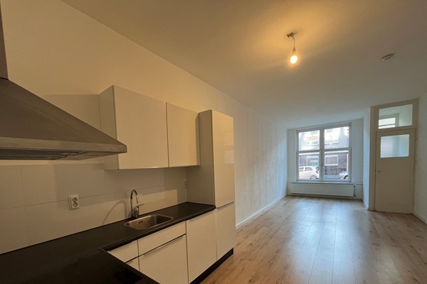 Geschikt voor 1 persoon of een stel Indeling De gemeenschappelijke hal/entree met bellentableau biedt toegang tot het trappenhuis. Vanuit de gang is er toegang tot alle vertrekken. Ruime woonkamer gelegen aan de voorzijde van de woning met open keuken. De keuken is voorzien van diverse inbouwapparatuur zoals een vaatwasser, combi-oven, inductiekookplaat en een koel- vriescombinatie. De badkamer is voorzien van een douche, toilet en een wastafelmeubel met spiegel. Twee slaapkamers waarbij de eerste ruime slaapkamer directe toegang heeft tot de tuin.