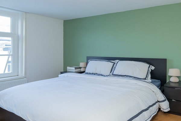 Indeling Het appartement is te bereiken via het gemeenschappelijke trappenhuis en is gelegen op de vierde verdieping. Via de entree komt u in een hal met bergkasten, een wasmachineaansluiting en ruimte voor een droger, een aparte kast met de CV-installatie, een separaat toilet en een badkamer met wastafel en ligbad. De woonkamer met open keuken is aan de voorzijde van het pand gelegen, terwijl de slaapkamers zich aan de achterzijde bevinden. De bovenverdieping van de maisonnette biedt een extra kamer en directe toegang tot het royale dakterras. Geschikt voor expats en professionals