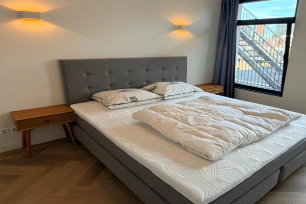 Indeling: Via de gezamenlijke buitenpoort komt u op de binnenplaats, via een korte trap bereikt u de hal met lift. Het appartement bevindt zich op de derde etage en heeft een eigen entree. Via de hal zijn alle vertrekken te bereiken die allen voorzien zijn van een PVC visgraat vloer. De woonkamer met luxe open keuken is in donkere kleurstelling en van alle gemakken voorzien zoals; Bora kookplaat, afzuigkap, inbouw vaatwasser, quooker, magnetron/oven combinatie, koelkast met vriezer en Siematic opbergmogelijkheden. De ramen beschikken over automatische zonwering in donkere kleurstelling. De badkamer is geheel betegeld in lichte kleurstelling en is voorzien van inloopdouche, wastafel met spiegelkast en radiator. De slaapkamer is ruim en in lichte kleurstelling. Via de hal is het toilet en opbergruimte met wasmachine te bereiken.