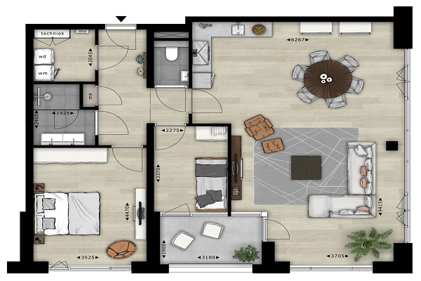 Alle appartementen in Sixty5 zijn tot in de puntjes afgewerkt. Het enige dat je hoeft te doen, is je meubels te verhuizen – ideaal! Waar de badkamer is voorzien van smaakvol sanitair van Villeroy & Boch, is de moderne keuken uitgerust met alle inbouwapparatuur om het koken nóg leuker te maken. Op de vloer ligt een luxe PVC vloer met houtlook en de wanden zijn reeds afgewerkt én geschilderd. Laten we ook de aanwezige internetaansluiting in zowel de woon- als slaapkamer niet vergeten. Je kunt dus direct van start met het leukste klusje: het decoreren van deze absolute droomwoning! De keukens van de appartementen zijn met alle denkbare apparatuur opgeleverd – koken was nog nooit zo ontspannen! Probeer de lekkerste recepten uit op een fijn 4-pits kooktoestel, houd alle ingrediënten koel en vers in de ruime koelkast en warm iets gemakkelijk op in de ruime combi magnetron. Heerlijk gegeten? Dan is de vuile vaat zo weg dankzij een praktische vaatwasser voorzien van de laatste technieken. Bon apétit! Ook de vloeren in jouw nieuwe huurappartement hebben we reeds voorzien van een prachtige én praktische PVC-vloer met een moderne houtlook. Het PVC is bijzonder handig in het onderhoud, maar geeft tegelijkertijd de luxe uitstraling van een houten vloer. Sterker nog: hij is niet van een echt exemplaar te onderscheiden. Wat een luxe! Ook de badkamer is luxe afgewerkt met smaakvol sanitair van Villeroy & Boch. ’s Morgens wakker worden en je tanden poetsen aan de wastafel met onderkast, handig voor het opbergen van toiletspullen. Tijdens een slaperig moment oppassen dat je je voet stoot bij het betreden van de douche? Niet nodig dankzij de inloopdouche met vlakke vloer én moderne drain. Alles oogt daarbij stijlvol en modern – helemaal van deze tijd!